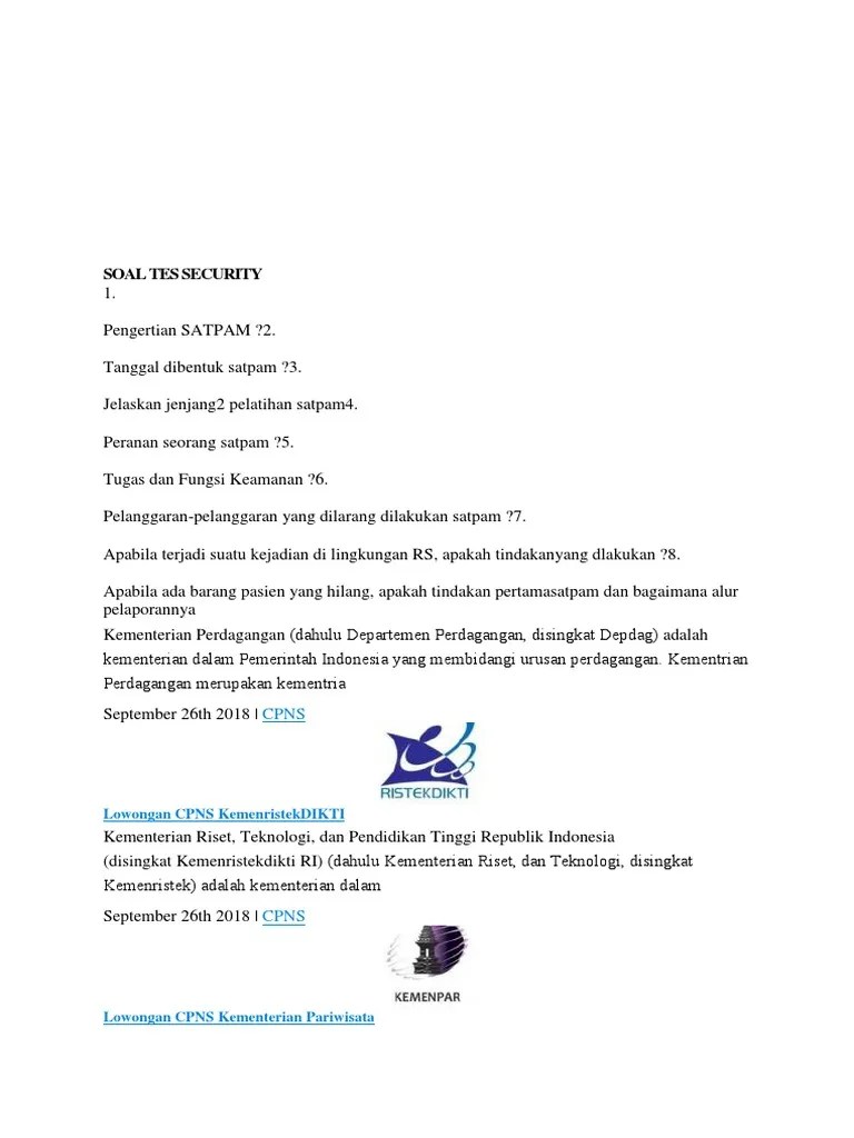 Soal Tes Satpam Jawabanku Id from i2.wp.com Maybe you would like to learn more about one of these? We did not find results for: Check spelling or type a new query. Soal pilihan ganda tes satpam.