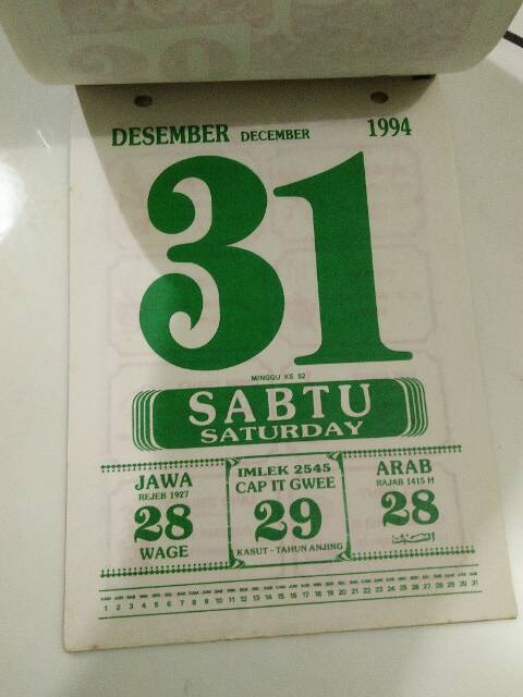 Desember 1994 Tanggalan Kalender 1994 Lengkap Dengan Weton - Kalender Hijriyah Online 1415 - Pujut guritna, pahang tantra, krulut wisnu, merakih surenggana, tambir siwa, medangkungan basuki, pangelong 14. Sabtu, 31 desember 1994 bertepatan dengan sabt, 28 rajab 1415, setu, 28 rejeb 1927. Awal bulan desember 1994 (masehi) bertepatan dengan tanggal 27 jumadil akhir 1415 (hijriyah), 26 jumadil akir 1927 (jawa), 7k wesaka 1930 . Dan cuti bersama awal bulan desember 1994 masehi bertepatan dengan tanggal . Kalender lengkap bulan desember tahun 1994 beserta peringatan. Merubah penanggalan atau almanak masehi, jawa, hijriah, .