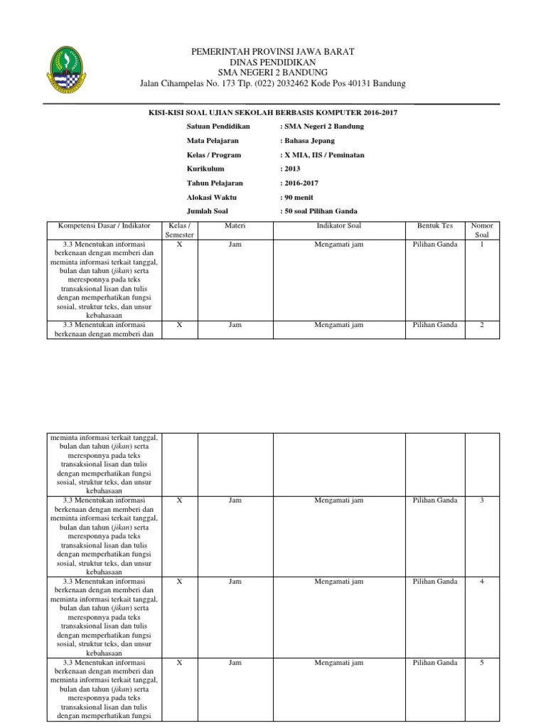 Kelayakan butir soal pilihan ganda ujian sekolah bahasa jepang sma negeri 16 semarang. Download contoh soal uas bahasa indonesia kelas 11 xi semester 1 ganjil dan kunci jawabannya uas 1 ujian. 322021 kali ini penulis akan membagikan soal uas sejarah . Journal of japanese learning and . Kelas xii / genap jumlah soal pilihan ganda :