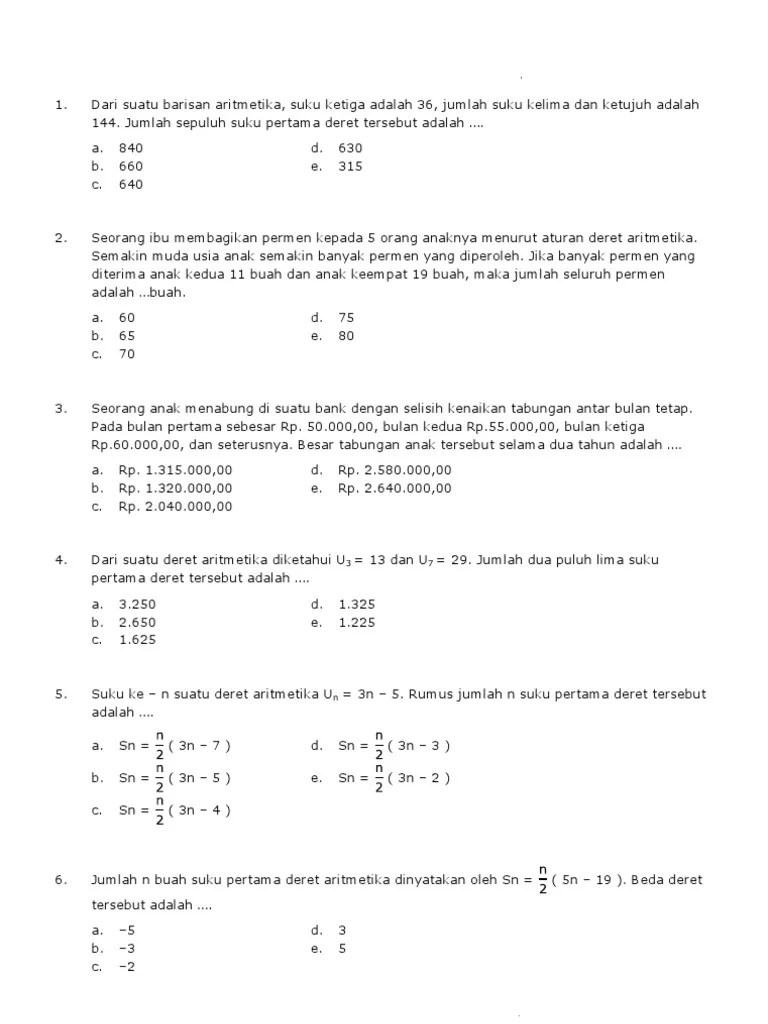 Soal Essay Barisan Dan Deret Aritmatika / Contoh Soal Dan Pembahasan Tentang Barisan Dan Deret Aritmatika Dan Geometri Ajar Hitung : Terdiri dari 25 soal pilihan ganda dan 5 soal essay.full description .
